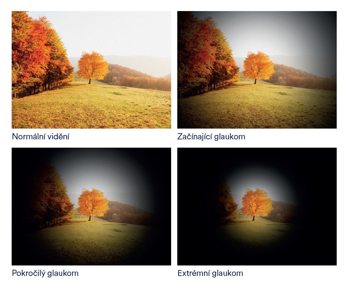 Glaukom je chronické onemocnění, při kterém dochází k postupné degeneraci a odumírání zrakového nervu. Hlavním rizikovým faktorem je zvýšený nitrooční tlak, který může dlouhodobě a bez bolesti poškozovat nervová vlákna přenášející obrazové informace do mozku. Onemocnění obvykle začíná nenápadnými výpadky periferního vidění, které si pacient nemusí uvědomit. Bez včasné léčby může glaukom postupně vést až k tzv. tunelovému vidění a v konečné fázi až k úplné ztrátě zraku.