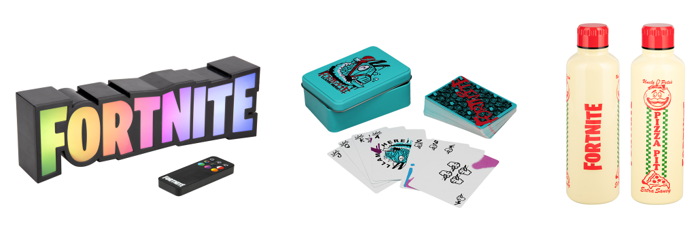 Fortnite už dávno není jen hra, ale i styl, který si děti i teenageři rádi přenesou do každodenního života. Hrnek na ranní kakao, nerezová láhev do školy, světlo do pokoje nebo dokonce herní karty, oficiální merch zkrátka udělá radost všem fanouškům, kteří chtějí mít kousek svého oblíbeného světa stále u sebe.